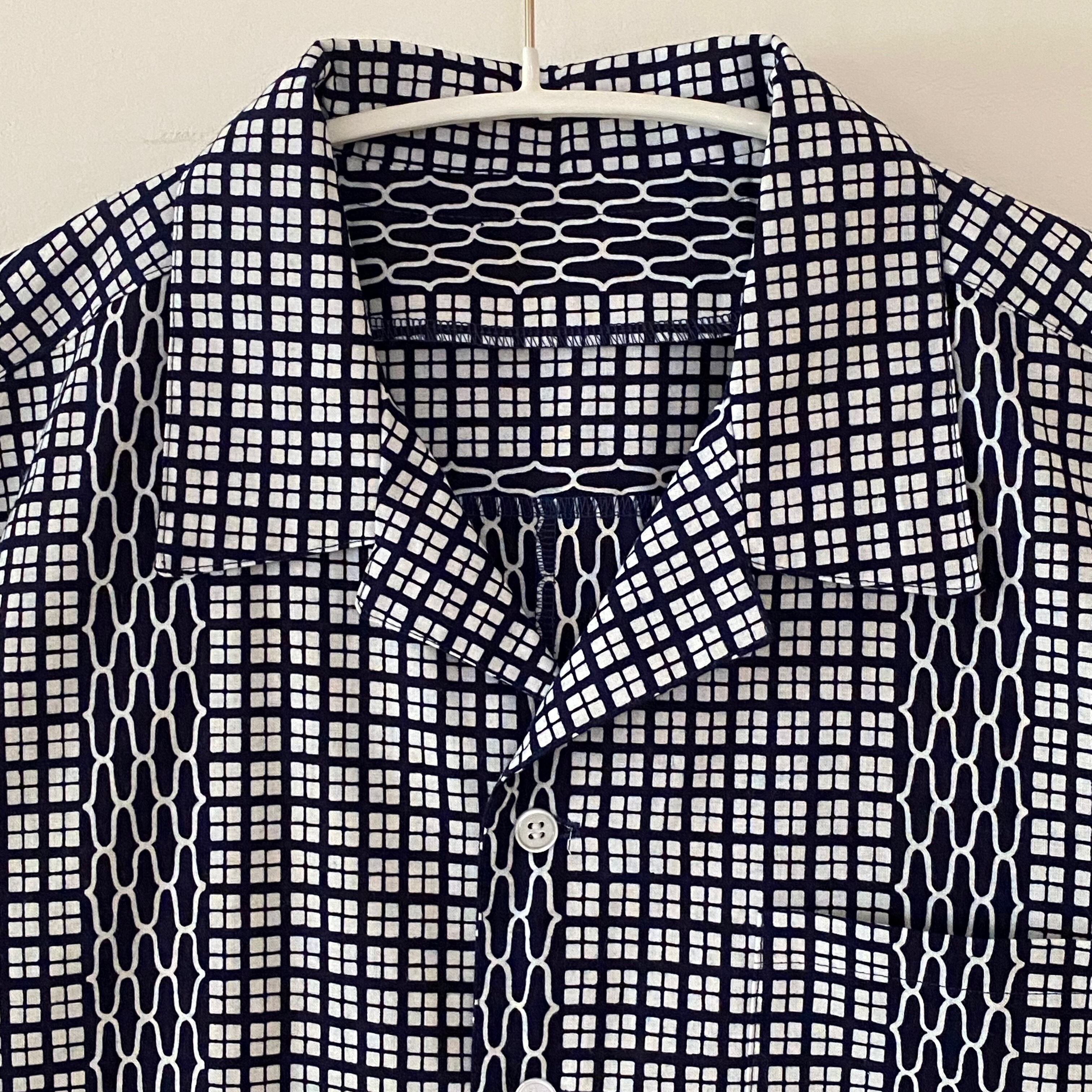 浴衣生地でアロハを仕立てました。伝統的な網縞模様ですが、アロハにするとモダンでお洒落な印象に。今までの浴衣とは一味違う、新しい浴衣スタイルが楽しめます。