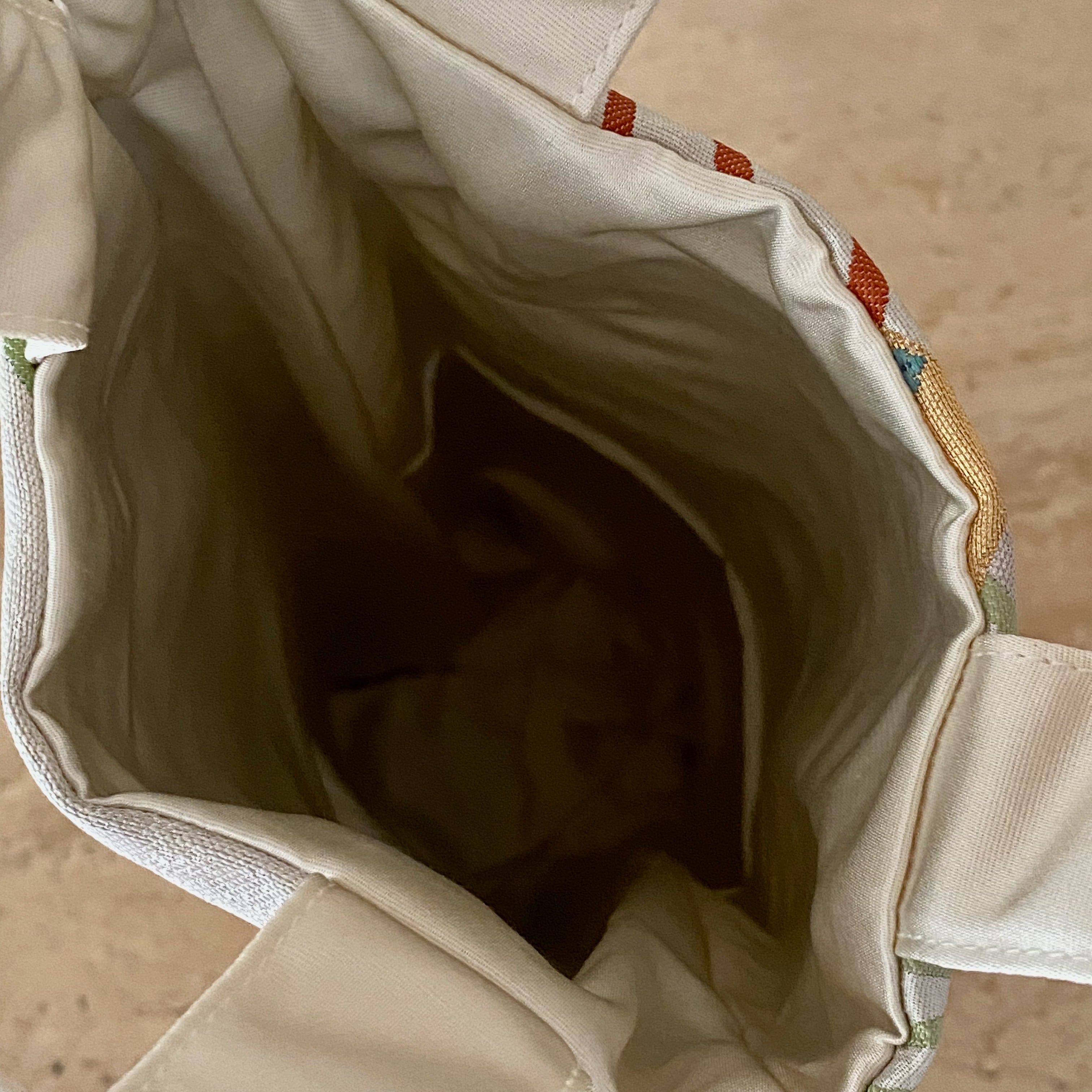 アンティークの帯をおしゃれなボトルバッグに仕立てました。